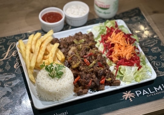 KAVURMA 150 GR, KAPYA VE ÇARLİSTON BİBER, SOĞAN, PUL BİBER, KEKİK, KARABİBER, AKDENİZ YEŞİLLİK, GÖBEK MARUL, HAVUÇ, CHERRY DOMATES, PİLAV, PATATES KIZARTMASI,TOZ ET BULYON