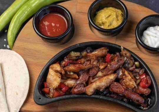 TAVUK GÖĞSÜ 220 GR , KAPYA VE ÇARLİSTON BİBER , SOĞAN , TEREYAĞI , ACI SOS , RANCH SOS , CHEEDAR SOS , TORTİLLA EKMEĞİ , TUZ , SOYA SOSU