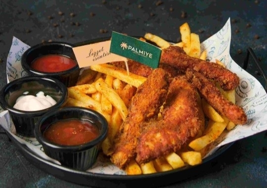 PATATES KIZARTMASI 200 GR , TAVUK GÖĞSÜ 150 GR , GALETA UNU , MISIR GEVREĞİ , YUMURTA , SWEET CHİLİ SOS , KETÇAP , MAYONEZ , KARABİBER