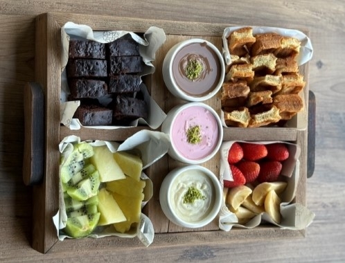 Callebaut marka belçika çikolataları ile servis edilir. Muz, çilek, kivi, ananas, browni, waffle parçacıkları ile çikolatanın harika uyumu sizlerle. MEVSİMSEL MEYVELER KULLANILIR, DEĞİŞİKLİK GÖSTEREBİLİR.