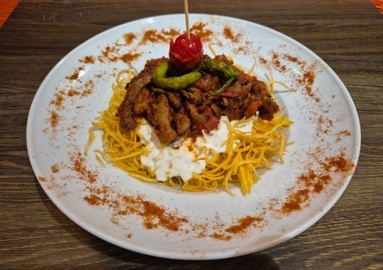200gr julyen bonfile , 30GR napoliten sos, kekik, tuz, kibrit patates, sarımsaklı yoğurt, kıl biber , çeri domates